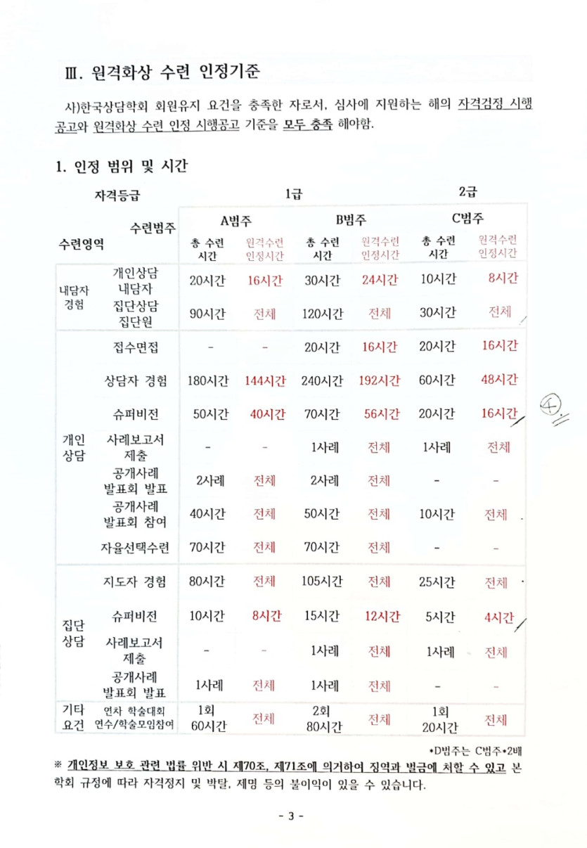 수련생 선생님들은 확인부탁드립니다. (원격화상수련인정기준)